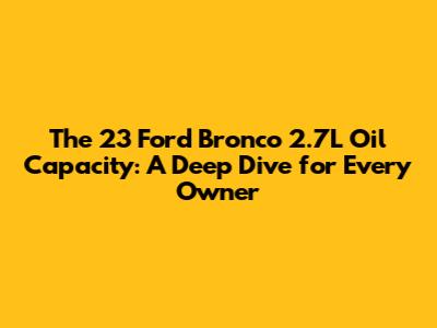 Hey Bronco enthusiasts! So, you've got yourself a sweet 2.7L Ford Bronco and you're wondering, "What's the deal with the oil capacity?" It's a totally legit question, guys, and getting this right is super important for keeping your off-road beast running smoothly. We're going to break down the exact oil capacity for the 2.7L EcoBoost engine found in many 2023 Ford Broncos, why it matters, and what you need to consider when you're doing that crucial oil change. Sticking to the manufacturer's recommended oil capacity isn't just a suggestion; it's a vital part of your vehicle's maintenance. Too little oil, and you risk overheating and excessive wear on critical engine components. Too much, and you can end up with issues like oil foaming, which reduces lubrication effectiveness, and even potential damage to seals and gaskets. So, let's dive deep and make sure you're armed with all the knowledge you need to keep that 2.7L EcoBoost purring like a happy kitten (or roaring like a Bronco, depending on your mood!). We'll cover the official figures, discuss the importance of the dipstick, and touch upon the types of oil that are best suited for this powerful engine.