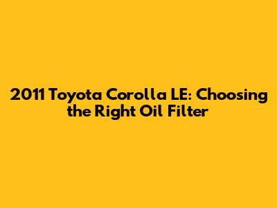 2011 Toyota Corolla LE: Choosing The Right Oil Filter