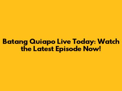 Batang Quiapo Live Today: Watch The Latest Episode Now!