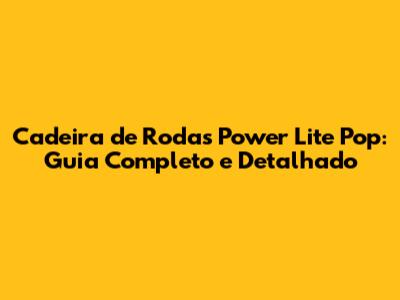 Cadeira De Rodas Power Lite Pop: Guia Completo E Detalhado