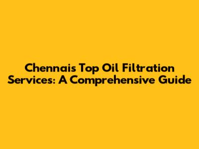 Chennai's Top Oil Filtration Services: A Comprehensive Guide