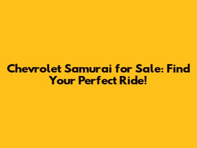 Hey guys! Are you on the hunt for a Chevrolet Samurai for sale? You've come to the right place! This iconic vehicle is a blend of ruggedness and versatility, perfect for both off-road adventures and daily commutes. Whether you're a seasoned off-roader or just looking for a reliable and unique ride, the Chevrolet Samurai is definitely worth considering. Let's dive into what makes this vehicle so special and how you can find the perfect one for your needs.