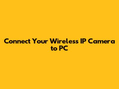 Connect Your Wireless IP Camera To PC