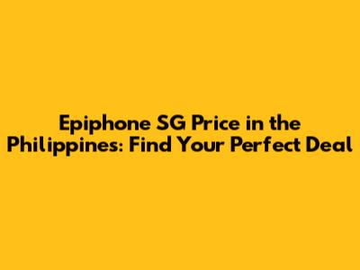 Epiphone SG Price In The Philippines: Find Your Perfect Deal