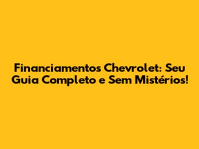 Financiamentos Chevrolet: Seu Guia Completo E Sem Mistérios!