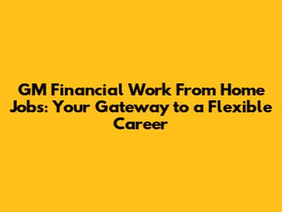 Are you on the hunt for GM Financial work from home jobs? You're in the right place! In today's world, remote work is becoming increasingly popular, and for good reason. It offers unparalleled flexibility, allowing you to balance your professional and personal life more effectively. GM Financial, a leading provider of auto finance solutions, understands this shift and offers a variety of work-from-home positions. These opportunities can range from customer service and sales to IT and finance, providing a diverse array of options for job seekers. If you're looking for a stable and rewarding career with the ability to work from the comfort of your own home, GM Financial might just be the perfect fit.