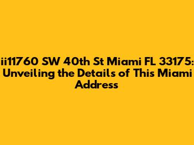 Alright, guys, let’s dive into everything you need to know about 11760 SW 40th St, Miami, FL 33175. This address isn't just a random string of numbers and letters; it’s a gateway to understanding a specific location in the vibrant city of Miami. Whether you're a prospective buyer, a curious neighbor, or just someone trying to get the lay of the land, this article is your go-to resource. We'll break down the essentials, explore what makes this location unique, and provide insights that go beyond the basic facts. So, buckle up and let’s get started!