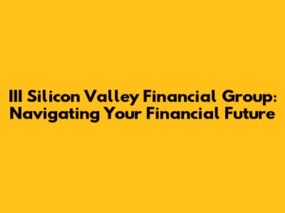 III Silicon Valley Financial Group: Your Financial Future