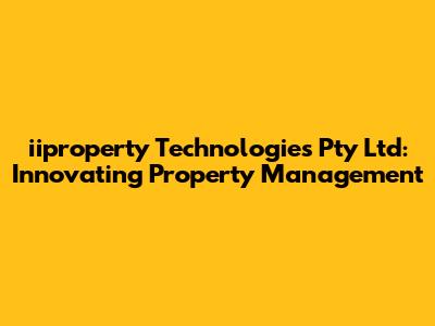 Iiproperty Technologies Pty Ltd: Innovating Property Management