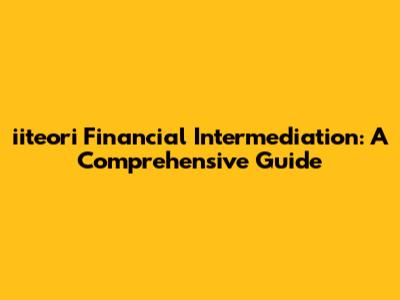 Iiteori Financial Intermediation: A Comprehensive Guide
