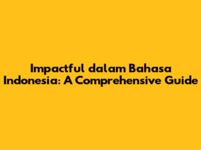 Are you looking to understand what impactful means in Bahasa Indonesia? Or perhaps you want to learn how to use this concept effectively in your conversations and writings? You've come to the right place! This comprehensive guide dives deep into the nuances of the word impactful within the context of Bahasa Indonesia, providing you with everything you need to know.