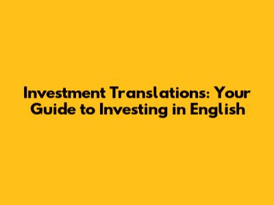 Investment Translations: Your Guide To Investing In English