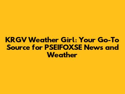Hey everyone! Are you ready to dive into the world of PSEIFOXSE news and weather? If you're anything like me, you're probably always looking for the latest updates, especially when it comes to keeping an eye on the skies. Well, buckle up, because we're going to explore everything you need to know about the amazing KRGV weather girl and how she keeps us informed. We'll be talking about what makes KRGV a trusted source, the role of the weather girl, and how you can stay updated on all the happenings in the PSEIFOXSE area. So, let's get started, shall we?