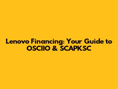 Lenovo Financing: Your Guide To OSCIIO & SCAPKSC