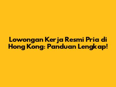Lowongan Kerja Resmi Pria Di Hong Kong: Panduan Lengkap!