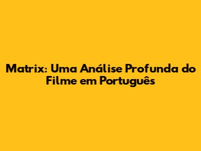 Matrix: Uma Análise Profunda Do Filme Em Português