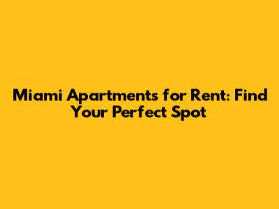 Miami Apartments For Rent: Find Your Perfect Spot