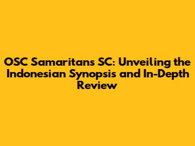 Hey guys! Ever stumbled upon a movie or show that just leaves you scratching your head, wondering what it's all about? Well, let’s dive deep into OSC Samaritans SC, breaking down the Indonesian synopsis and giving you an in-depth review. This article is designed to be your go-to guide, providing clarity and insights into this intriguing piece. Whether you're a seasoned cinephile or just looking for your next binge-worthy series, we’ve got you covered. So, grab a comfy seat, and let's get started!