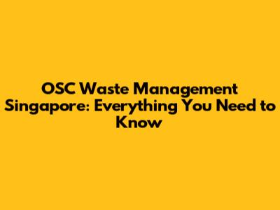 OSC Waste Management In Singapore: A Comprehensive Guide
