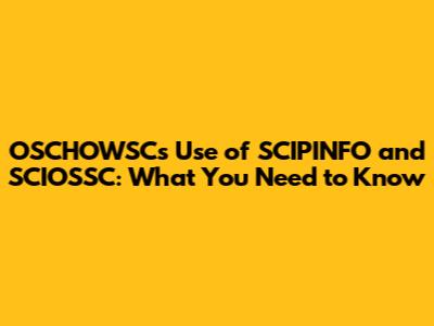 OSCHOWSC's Use Of SCIPINFO And SCIOSSC: What You Need To Know