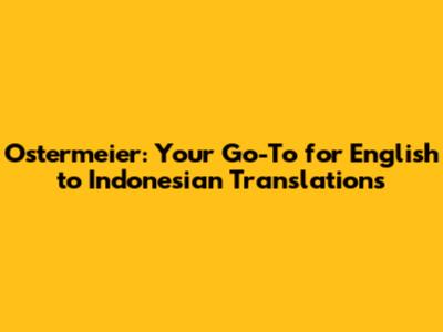 Hey guys! Ever found yourself needing to translate something from English to Indonesian and just feeling totally lost? Well, you're not alone! Getting accurate and nuanced translations can be a real challenge. That's where understanding the importance of quality translation services, especially when dealing with specific terminology and cultural contexts, becomes super important. This article will dive into why Ostermeier could be your best bet for nailing those English to Indonesian translations. We'll break down what makes a good translation, why professional services matter, and how to choose the right translator for your needs. Trust me, by the end of this, you'll be a translation pro!