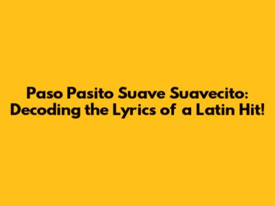 Paso Pasito: Decoding The Lyrics Of A Latin Hit!