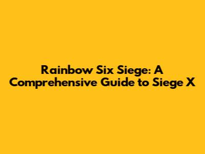 Rainbow Six Siege: A Comprehensive Guide To Siege X