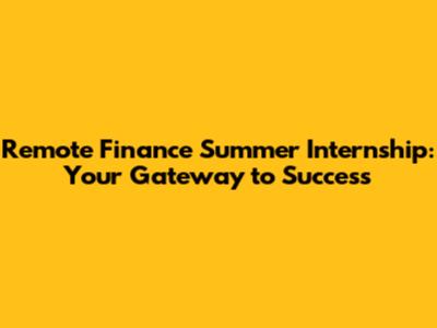Remote Finance Summer Internship: Your Gateway To Success