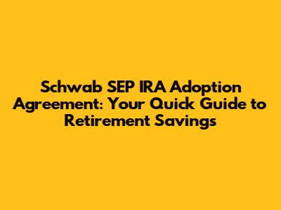 Hey there, future retirees! Let's dive into something super important: the Schwab SEP IRA adoption agreement. If you're a small business owner or self-employed, this could be your golden ticket to a comfy retirement. Seriously, guys, setting up a SEP IRA with Schwab is a pretty straightforward process, and in this guide, we'll break it down so you feel totally confident. No complicated jargon, just the facts. We'll cover everything from what a SEP IRA actually is, to why you might want one, and how to get that Schwab SEP IRA adoption agreement signed and sealed. Ready to boost your retirement savings game? Let's go!