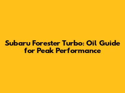 • A: Typically, your Forester Turbo requires a full synthetic oil that meets Subaru's specifications. Always consult your owner's manual for the exact requirements for your model year.