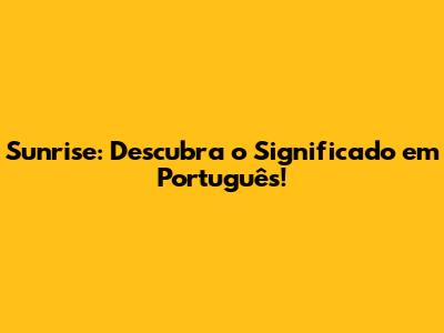 Sunrise: Descubra O Significado Em Português!