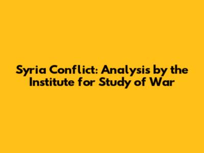Syria Conflict: Analysis By The Institute For Study Of War