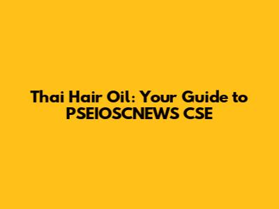 Thai Hair Oil: Your Guide To PSEIOSCNEWS CSE