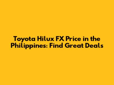Finding the best price for a Toyota Hilux FX in the Philippines requires research, negotiation, and a bit of patience. By understanding the factors that influence pricing and following these tips, you can drive away with a great deal on a reliable and versatile pickup truck. Happy hunting, and good luck snagging your dream Hilux FX!