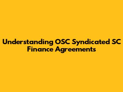 What is an OSC Syndicated SC Finance Agreement?