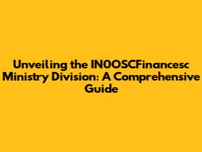 Unveiling The IN0OSCFinancesc Ministry Division: A Comprehensive Guide