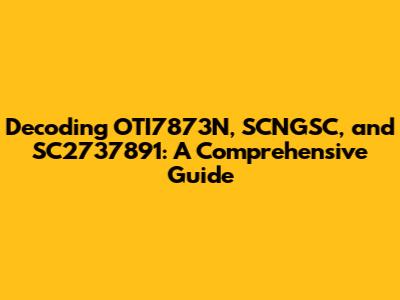 Unveiling The Secrets Of OTI7873N, SCNGSC, And SC2737891